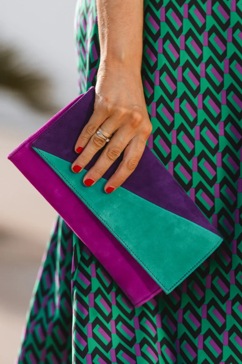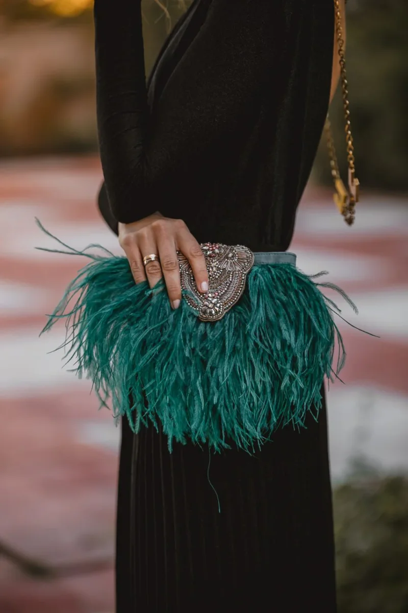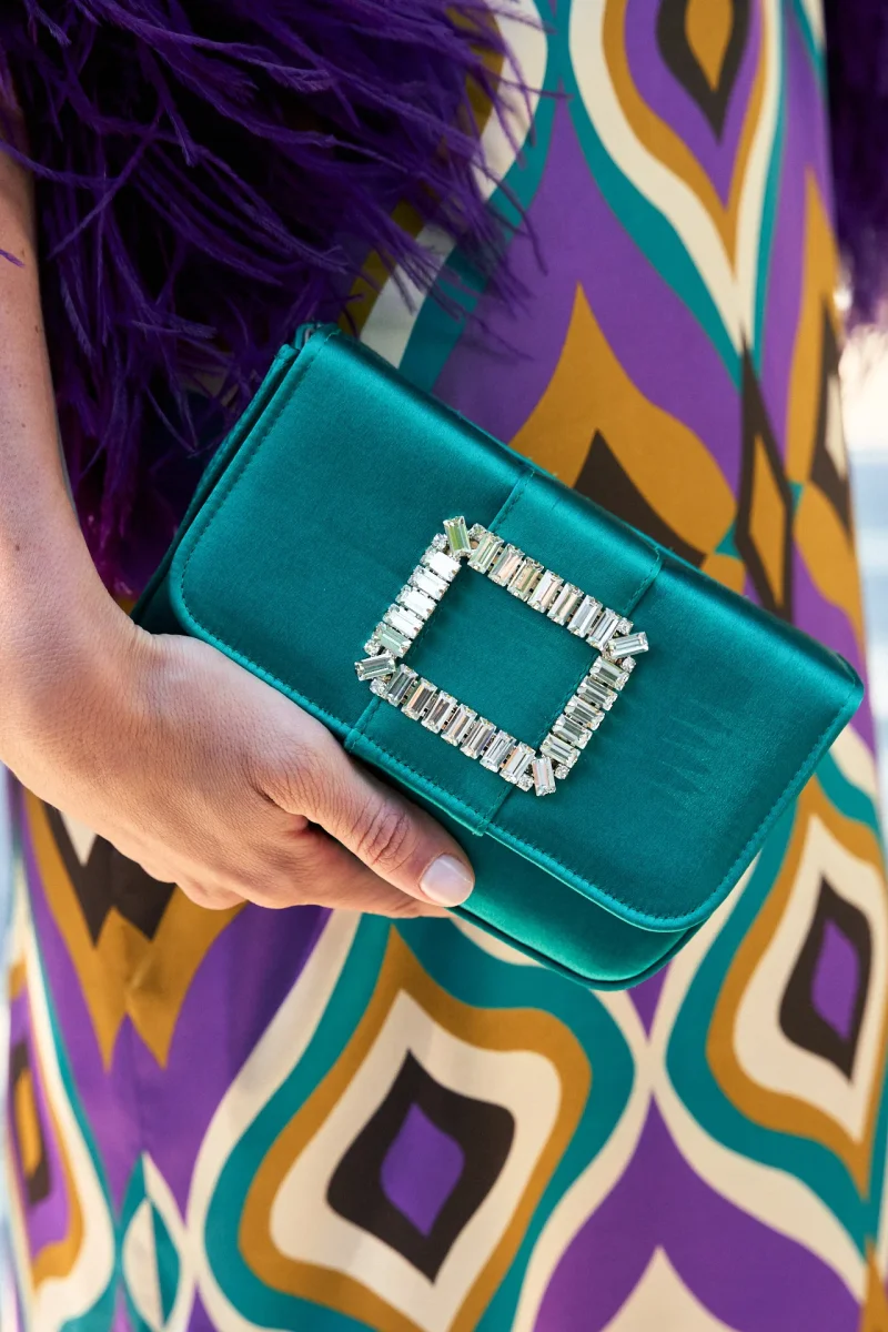 Cartera satén joya verde