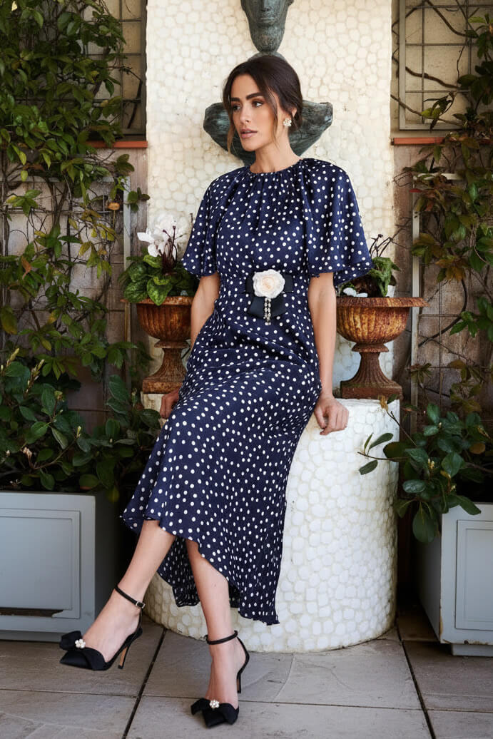 Vestido Carmen midi azul marino