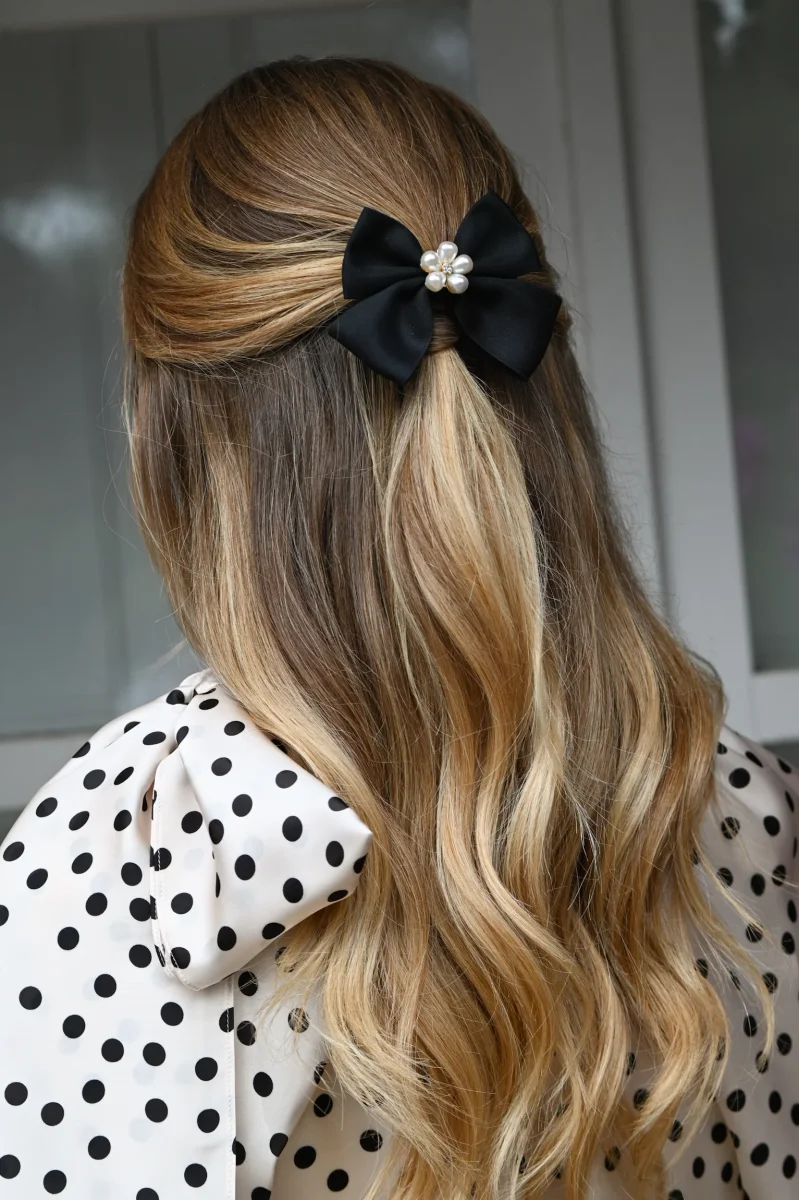 Pasador lazo perlas negro