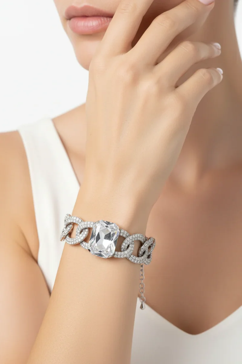 Pulsera eslabones plateados Swarovski