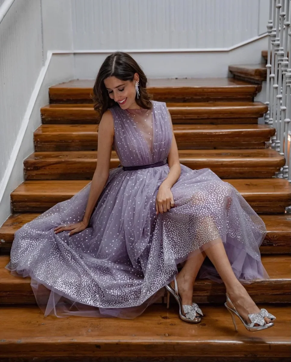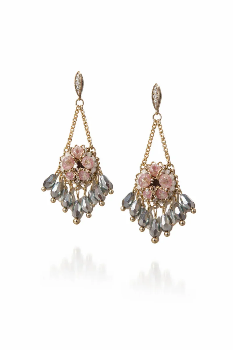 Pendientes cadenita cristales gris/lavanda OUTLET