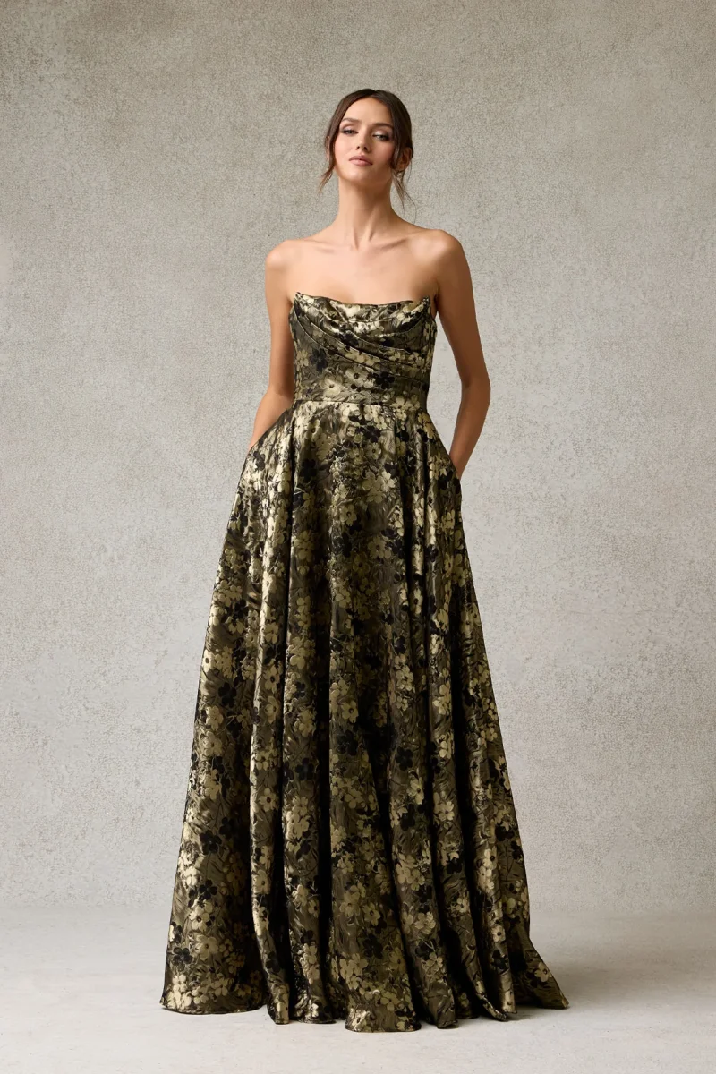 Vestido Ajustado con Corsé Estampado de Floral Glitter (Varios Colores)