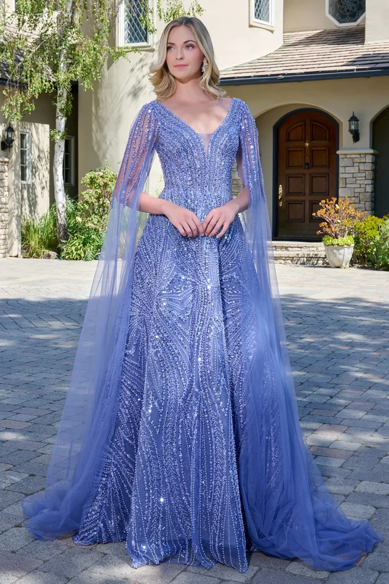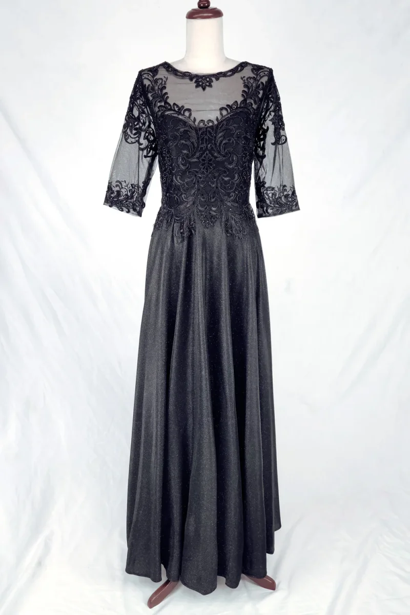 Vestido Corte Sirena con Mangas 3/4 Transparentes con Detalles de Bordado en Corpiño (Varios Colores)
