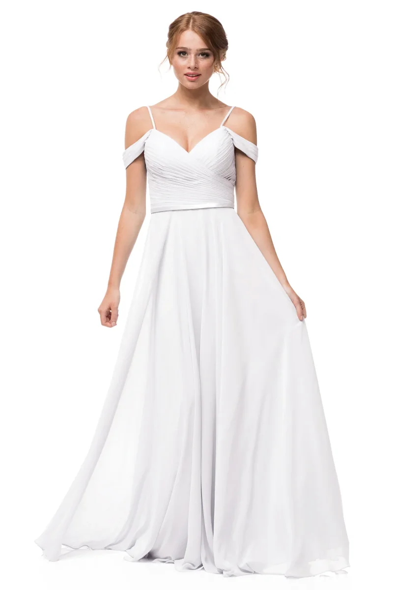 Vestido de Fiesta de Chiffon con Manga al Hombro y Tirantes, Color Off White