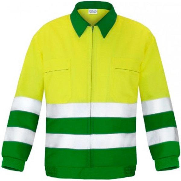 - 2 bandas reflectantes en contornos de pecho y mangas.