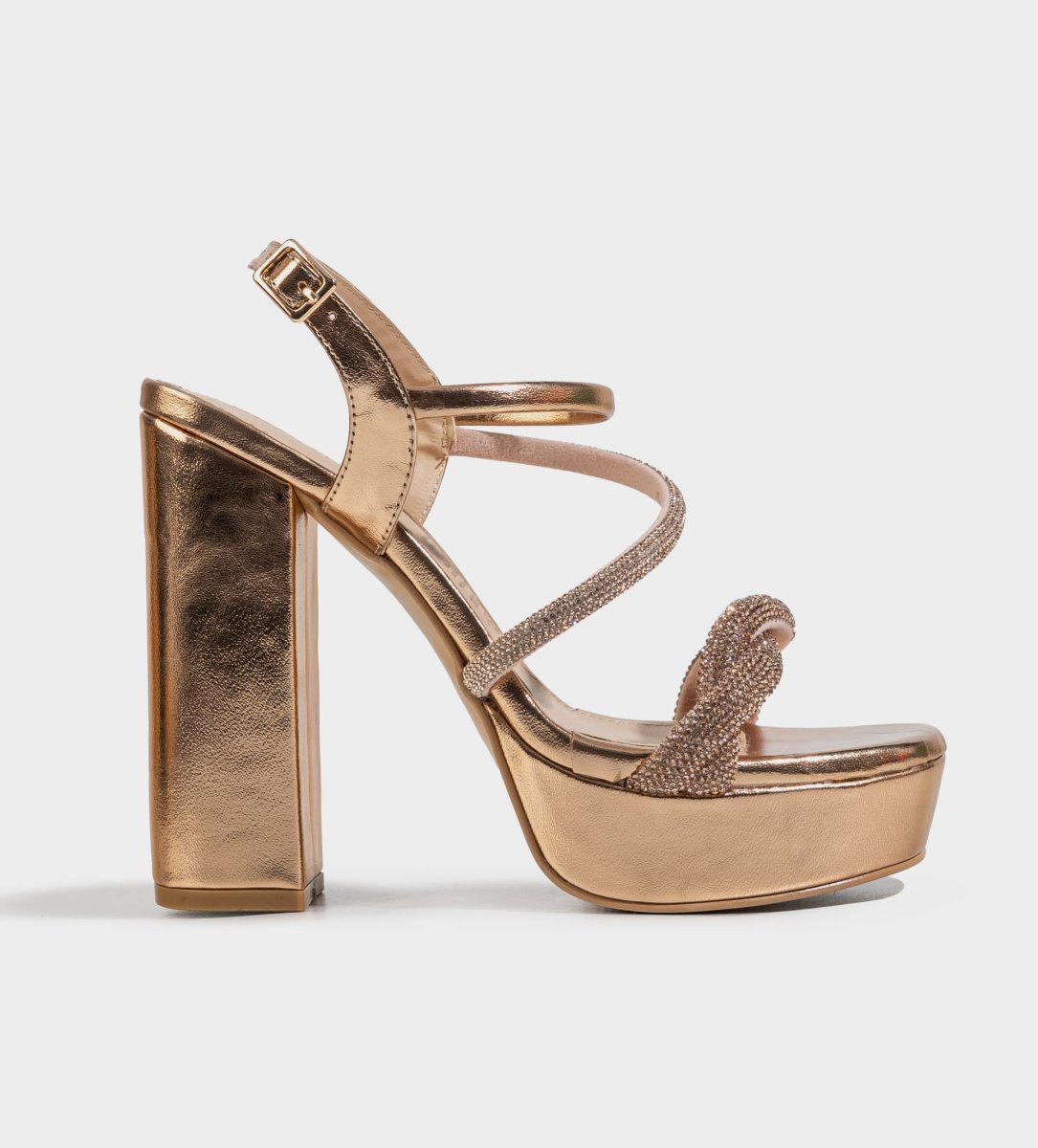 SANDALIA PLATAFORMA BRILLOS ORO ROSADO