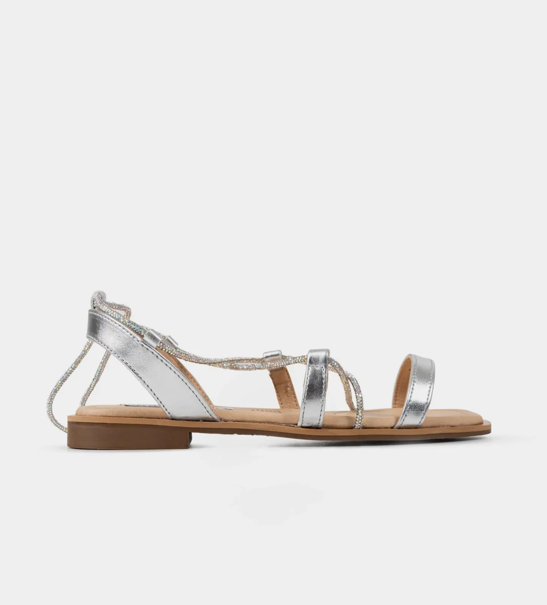 SANDALIA PLANA TIRAS BRILLOS PLATA