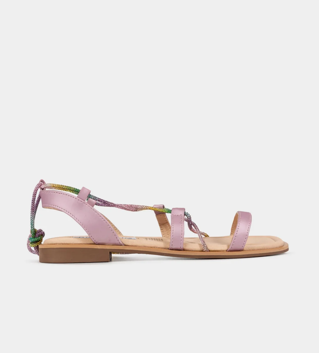 SANDALIA PLANA TIRAS BRILLOS ROSA