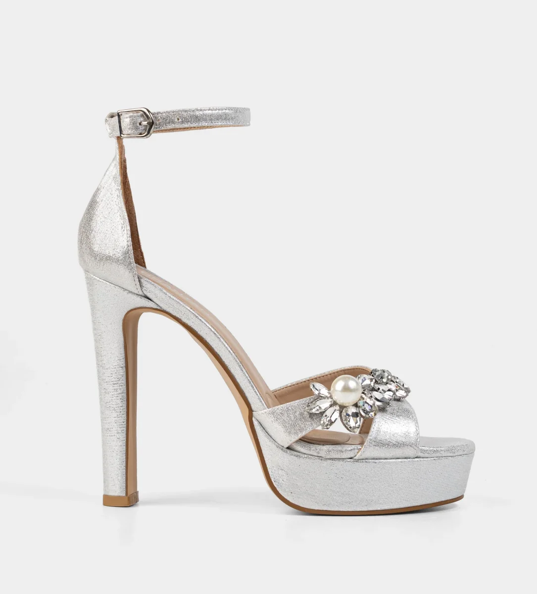 SANDALIA TACÓN ALTO PLATA METÁLICO