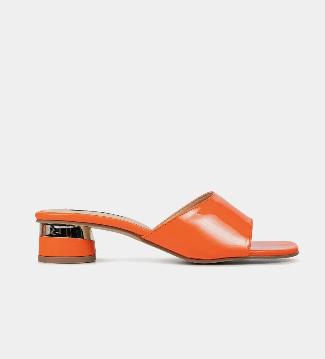 SANDALIA MULE TACÓN BAJO CHAROL NARANJA