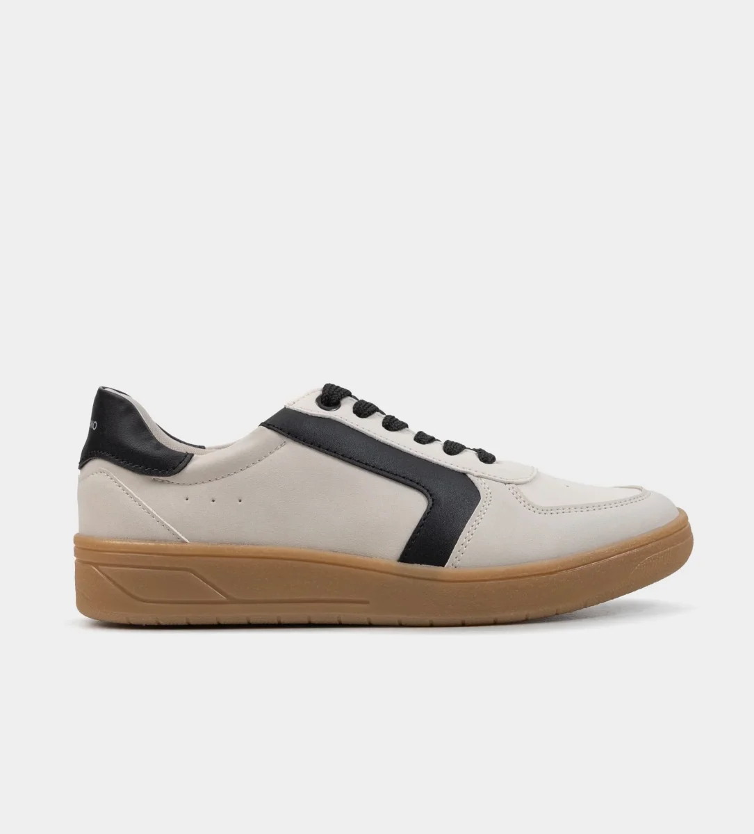 SNEAKER CASUAL GAMUZA PIEL BEIGE FRANJAS LATERALES