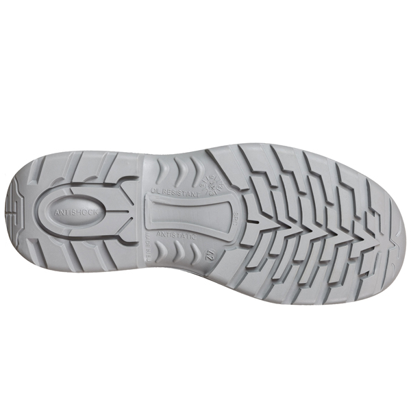 Por la parte de fuera, contiene un corte exterior de piel imprimida otorgando propiedades hidrófugas. Seguidamente, este calzado viene equipado con una puntera de composite capaz de resistir hasta 200J. Finalmente, por la parte inferior tiene una suela de PU antideslizante.