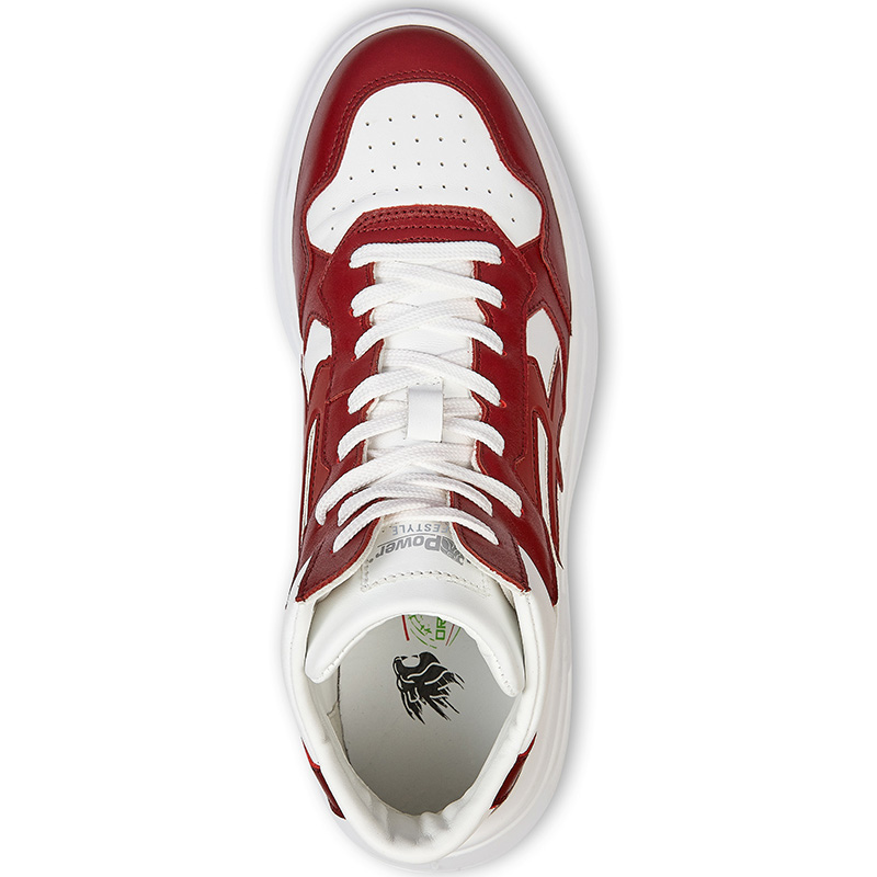 | CORTE | Parte superior de suave piel blanca con inserciones amaranto |