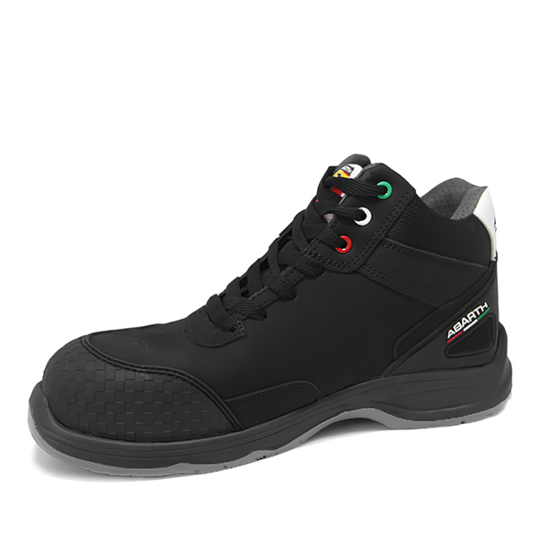 La línea de calzado Abarth Zerocento Xtrem está fabricada y certificada bajo la Normativa EN ISO 20345:2011, con puntera de fibra de vidrio extra resistente y plantilla textil anti-perforación. Zapatos y botas de piel de ante y de piel Action Nobuck S3, con refuerzo de goma en la puntera y en el talón, fabricados con materiales de alta calidad.
