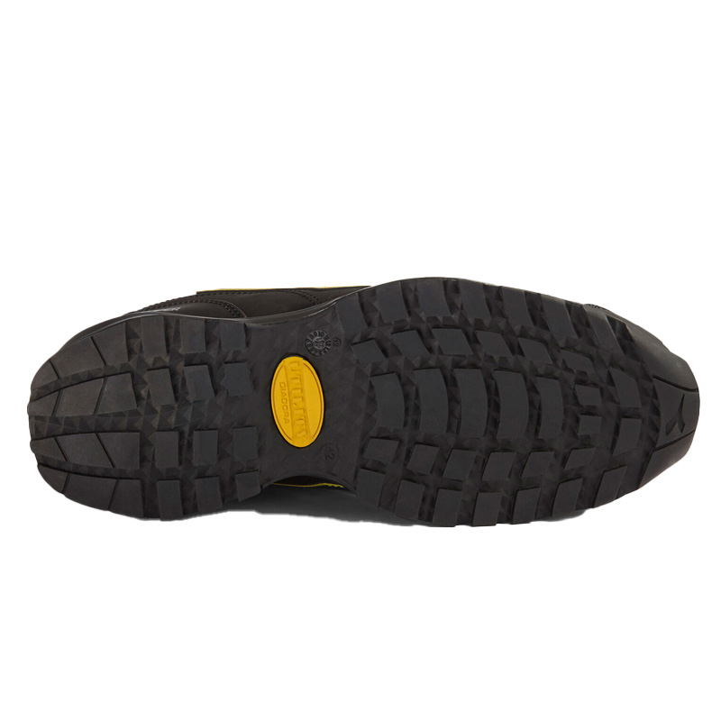 Calzado bajo de seguridad S3S nubuck silk repelente al agua. Tecnología Mass Damper, puntera de aluminio 200J. Ajuste 11. Forro Air Mesh con antidescalzante de microfibra, K SOLE, película de TPU. Plantilla anatómica extraíble de espuma PU y carbones activos. Protección del talón de TPU. ESD.