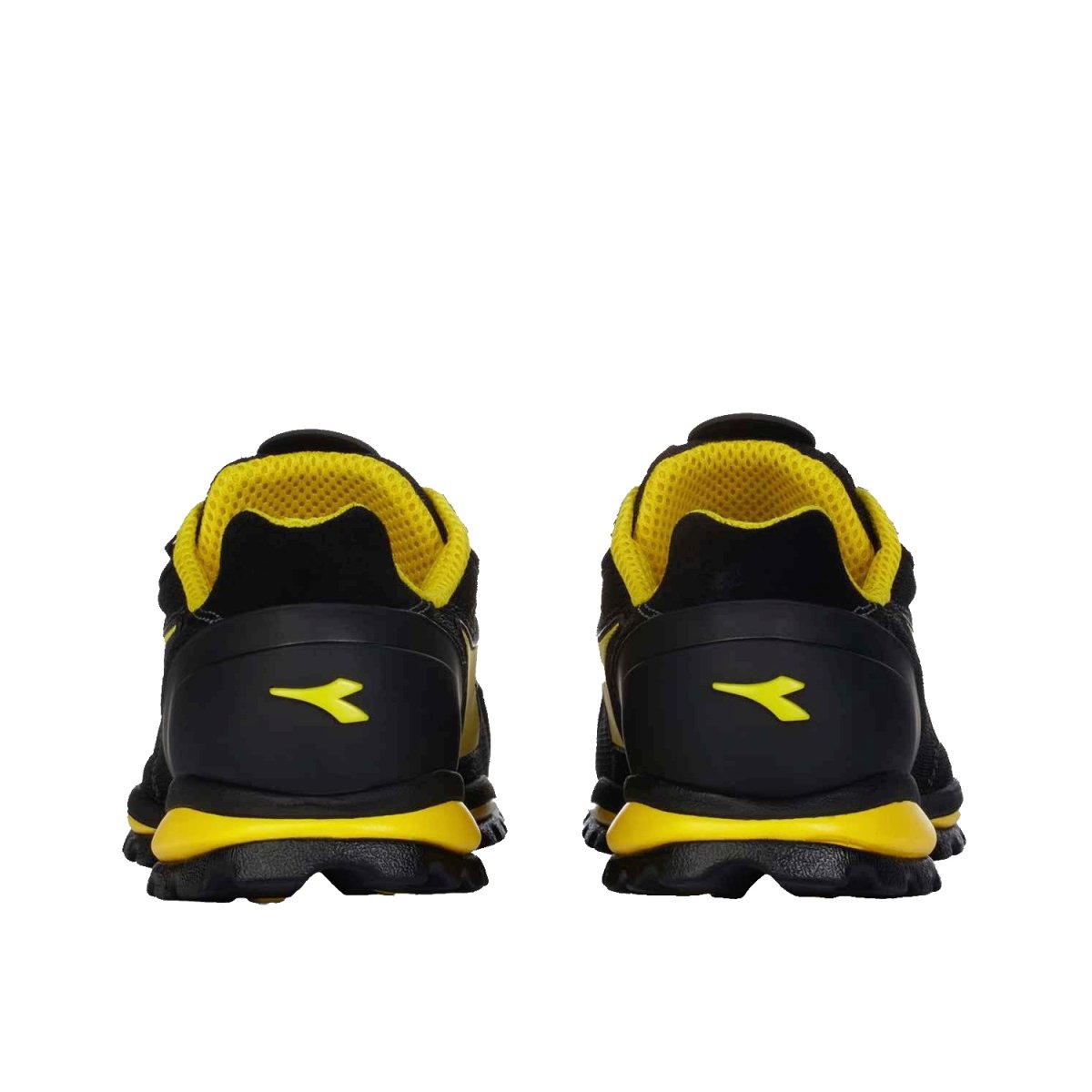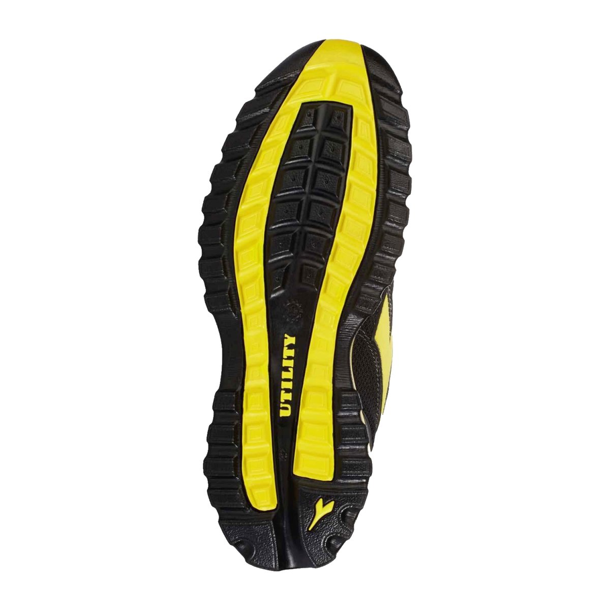 Calzado bajo de seguridad en S1PS en tejido de rejilla y piel de ante de becerro. Puntera de aluminio 200J. Ajuste 10. Forro Air Mesh. Plantilla extraíble de EVA perforada con inserción shock absorber. Inserción antiperforación K SOLE. Protección del talón de poliuretano termoplástico.