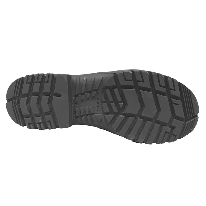 Por la parte exterior, viene equipado con un corte de piel de ante, haciéndo del calzado apto para la soldadura. También contiene una puntera de seguridad hecha de acero, protegiendo la parte frontal tanto del calzado como del pie del usuario. Además, por la parte inferior viene con una suela de caucho nitrílico con propiedades antideslizantes.