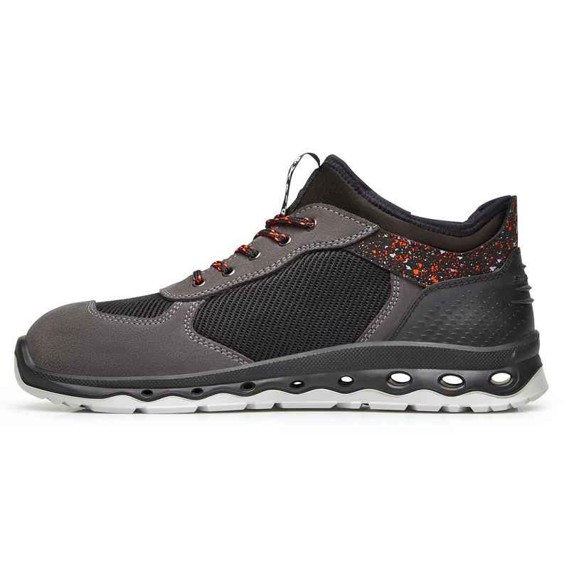 Os presentamos el calzado de seguridad de la marca Exena el modelo Earth. Este zapato viene con un diseño en gris con algunos detalles en naranja y en blanco. También cuenta con las certificaciones S1P ESD SRC, por lo que es apto para gran variedad de sectores laborales entre ellos la construcción o la electricidad