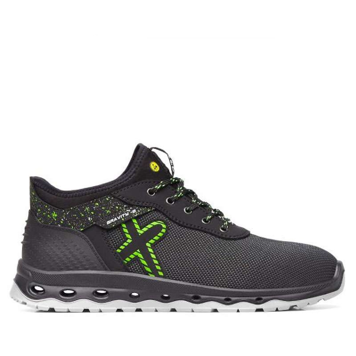 Por la parte exterior, viene equipado con un corte transpirable micro-seco hidrófugo. También contiene una puntera de seguridad hecha de composite, protegiendo la parte frontal tanto del calzado como del pie del usuario hasta 200J. Además, por la parte inferior viene con una suela de poliuretano con propiedades antideslizantes.