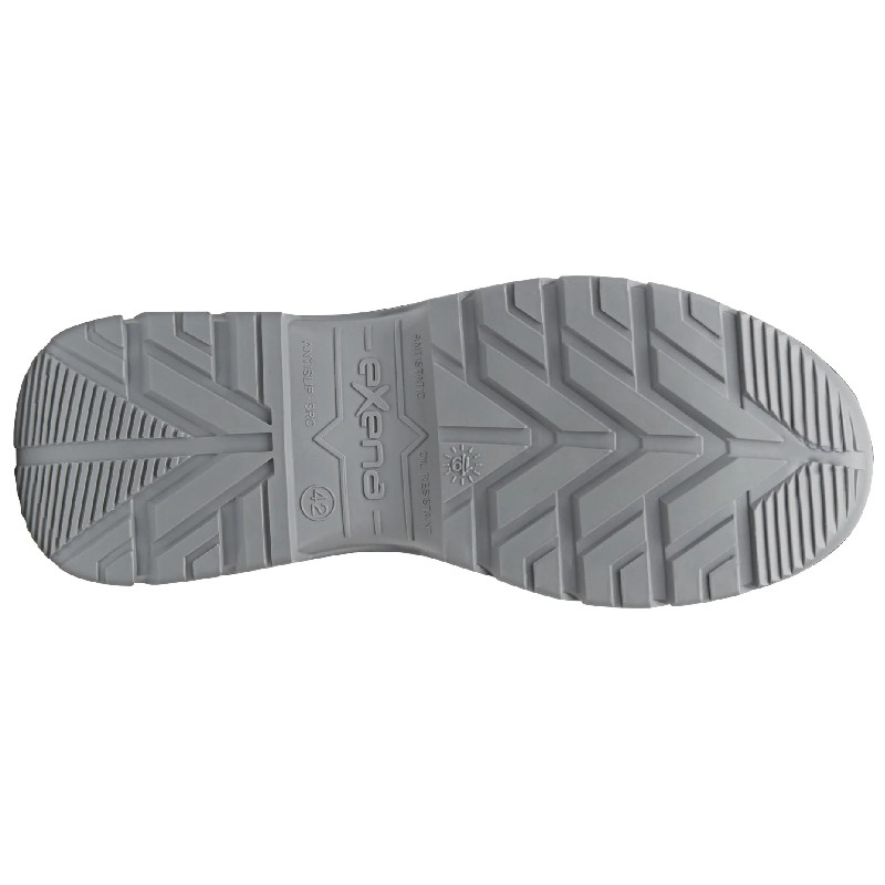 La suela de poliuretano de doble densidad 2D con agarre SRC ofrece tracción antideslizante sobre múltiples superficies. Clasificadas como S3 CI WR SRC, cumplen con la norma EN ISO 20345:2011, garantizando seguridad y rendimiento.