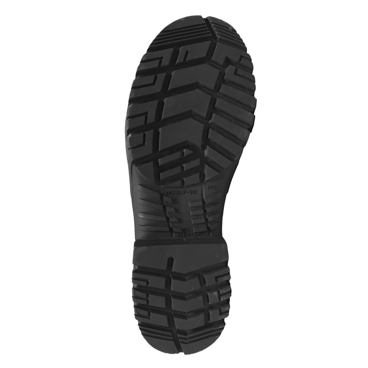 Por la parte exterior, viene equipado con un corte de piel de ante, haciéndo del calzado apto para la soldadura. También contiene una puntera de seguridad hecha de acero, protegiendo la parte frontal tanto del calzado como del pie del usuario. Además, por la parte inferior viene con una suela de caucho nitrílico con propiedades antideslizantes.