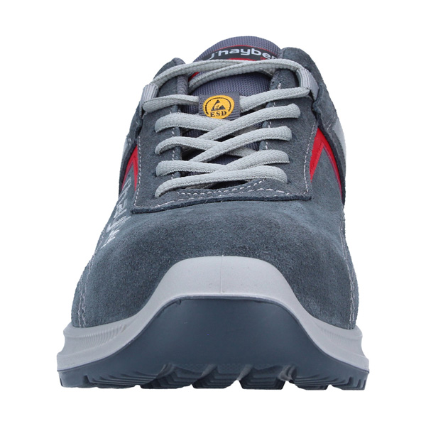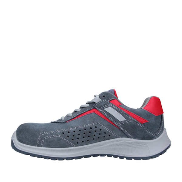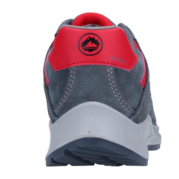 Calzado de seguridad modelo DAKAR en color gris con detalles en rojo.