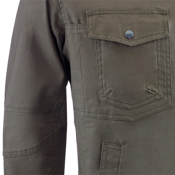 - Dos bolsillos laterales abiertos y dos bolsillos en el pecho con cierre de botón a presión.