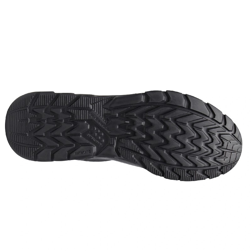 La suela de EVA Extralight® con relieve de goma antideslizante certificada SR garantiza máxima seguridad en superficies resbaladizas. Además, cuenta con una plantilla anatómica, antistática y extraíble que se adapta al uso prolongado.