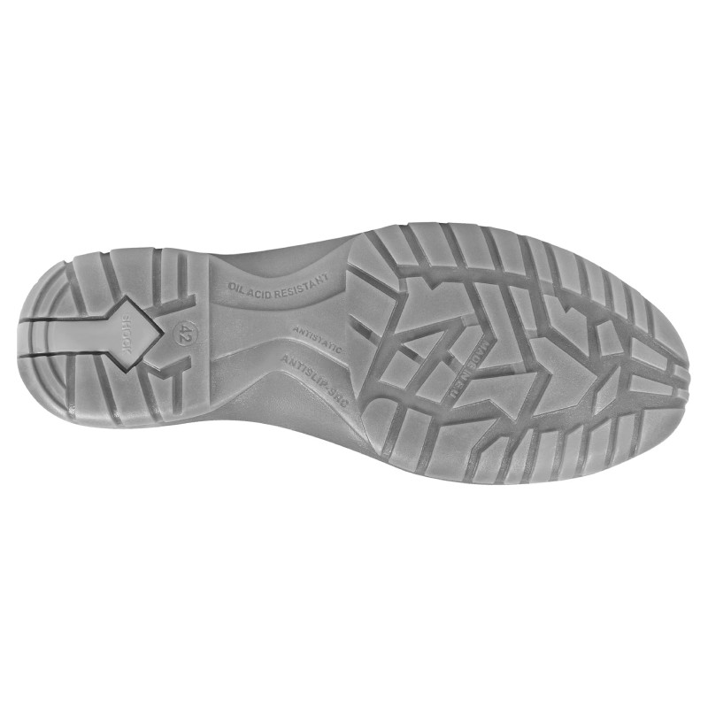 Su suela de poliuretano de doble densidad 2D, con agarre SRC antideslizante, y plantilla anatómica desmontable ofrecen estabilidad, confort y absorción de impactos. Cumple con la norma EN ISO 20345:2011, siendo una opción fiable y duradera.