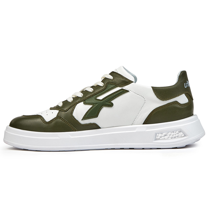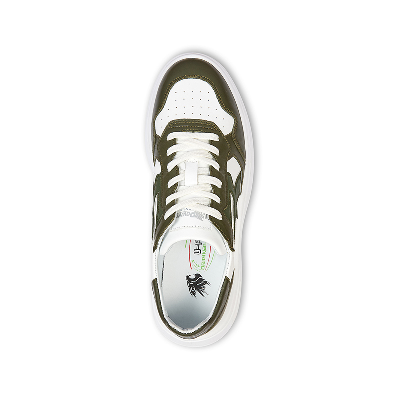 | CORTE | Parte superior de suave piel blanca con inserciones verdes |