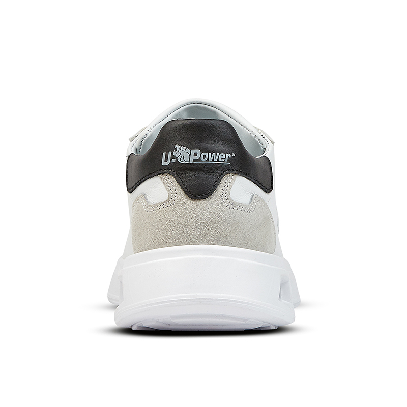 La zapatilla U-Power Urban HAZEL es un calzado de seguridad con un corte de una piel suave de color blanco y ante haciendolo apto para tus trabajos de hosteleria, peluqueria y de soldadura. Estéticamente, este zapato contiene mayormente el color blanco con unos detalles tanto negros como grises en la parte trasera.